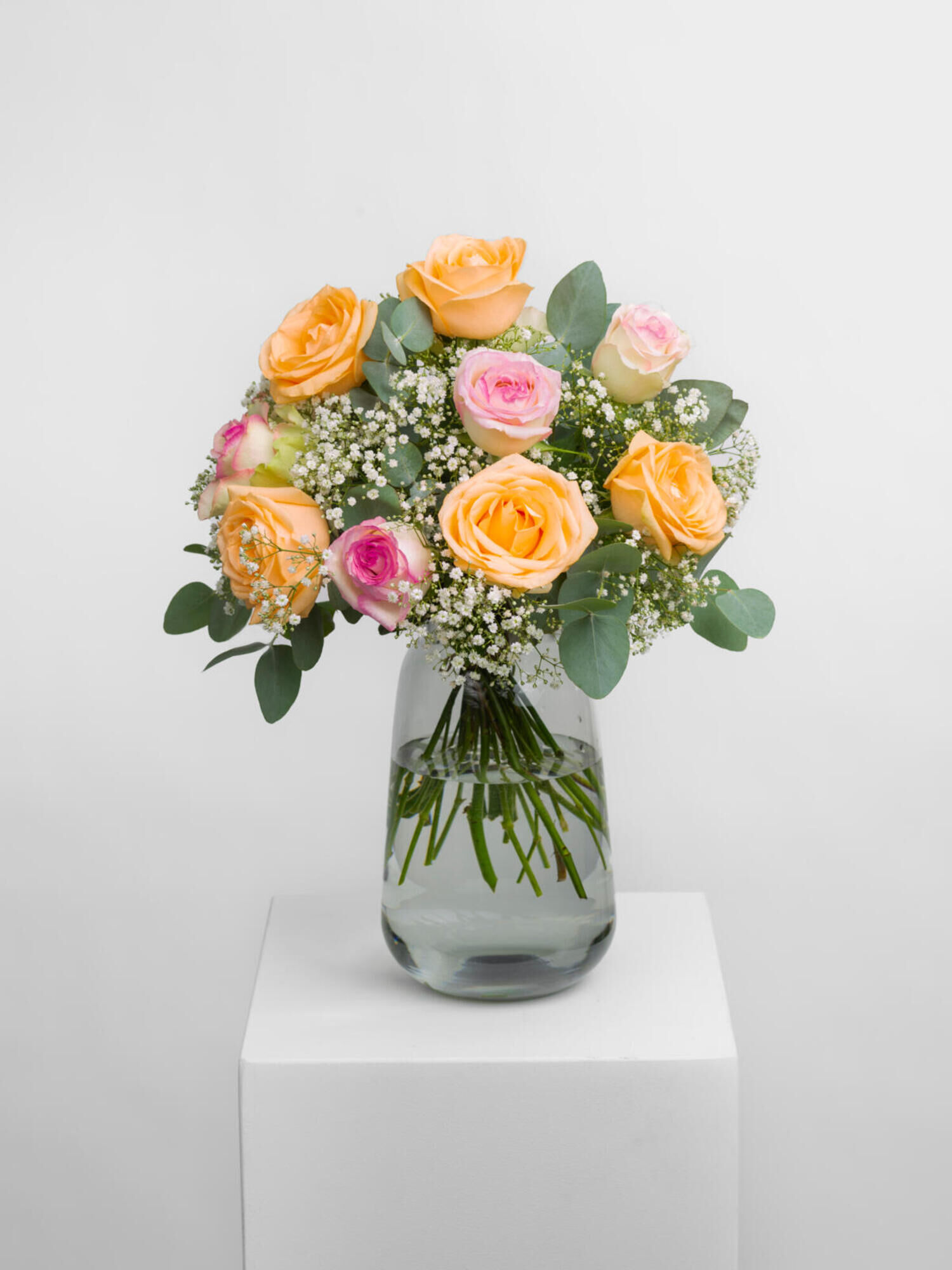 Ein Rosenstrauß mit Rosen in Pfirsich und Rosa. ➤ Bei Fleurop Blumenversand bestellen und frisch gebunden vom Floristen vor Ort liefern lassen.