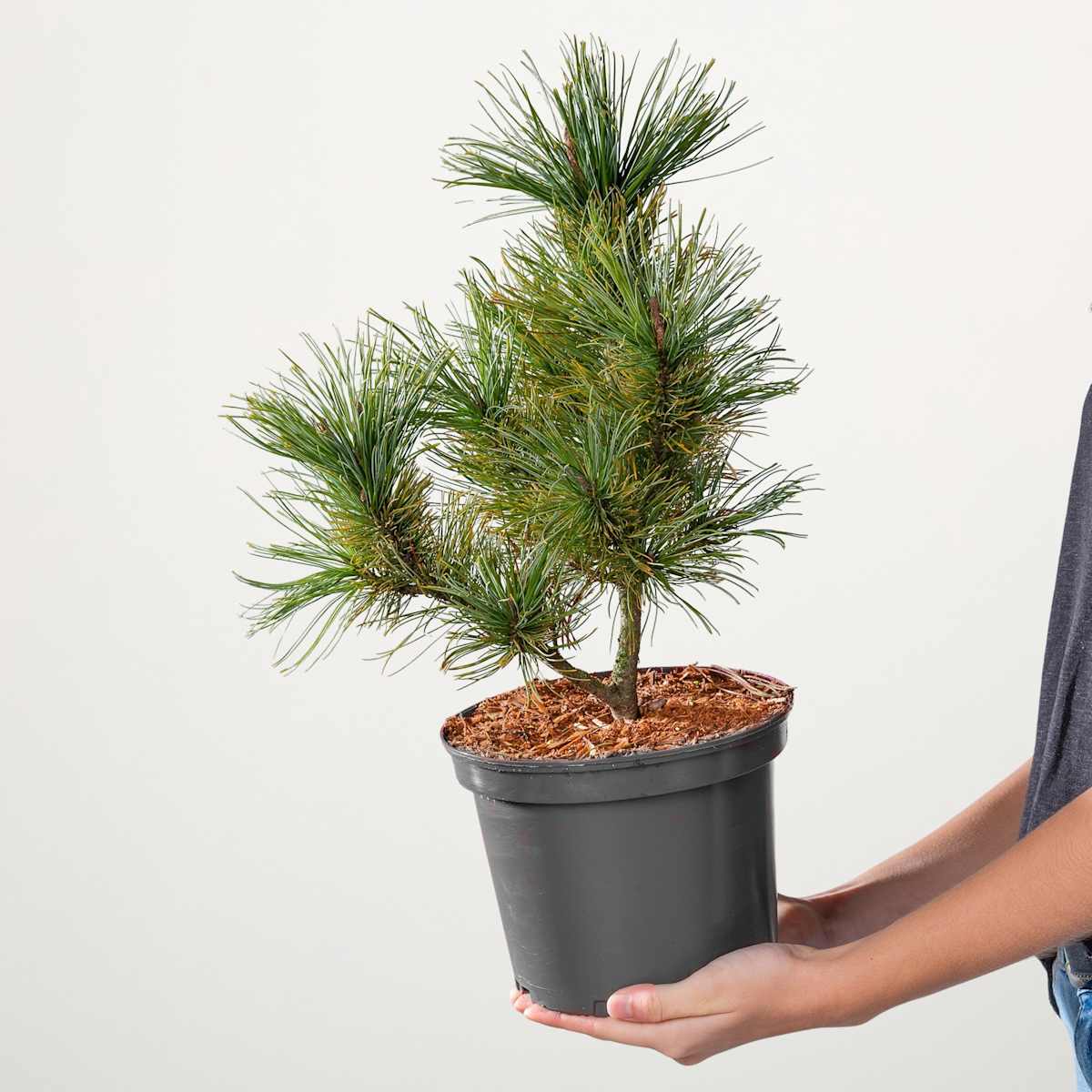 Ist sie nicht niedlich? Die Zirbelkiefer ‚Nana‘ ist als Vertreterin der Art Pinus cembra eine richtige Zwergin. Sie wird ‚nur‘ 1,7 m hoch und 1,2 m breit mit ihrem pyramidalen Wuchs. Praktisch, so passt sie auch in kleine Gärten. Denn mit ihren dunkelgrünen, langen Nadeln ist sie eine echte Augenweide, auch im Winter denn sie ist immergrün. Übrigens, wenn sie etwas älter ist, trägt sie im Mai violette Blüten, aus denen sich dann zu Oktober die typischen ovalen, braunen Zapfen entwickeln.Die Zirbelkiefer ‚Nana‘ ist schwer zu übersehen, besonders wenn du immer für ausreichend Wasser sorgst, und ihr einen sonnigen Standort gibst. Dann wächst sie munter vor sich hin.